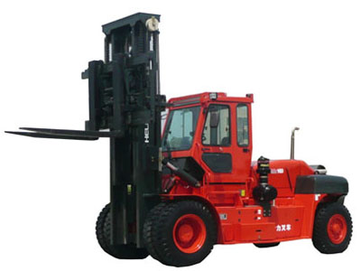 我公司的14-16T国产化叉车,应用叉车的成熟设计方案,主要性能参数达到国内先进水平。具体配置与优点如下: 1、底盘配置 (1)发动机选用广西玉柴柴油机,是6缸涡轮增压发动机,此发动机动力强劲,可靠性高,低燃油、低排放、低温易启动,该机型应用广泛,性价比高。 (2)变速箱选用高性能合力专用变速箱与进口的萨克斯变矩器匹配,效率高,噪音低,质量稳定,性能可靠,档位分配为前四后四,细分的档位设计,提高了燃油经济性,节能降耗。 (3)驱动桥,针对叉车特殊工况设计,采用大轮边小主减结构,是桥高可靠性的保证,钳盘制动,拥有良好的使用性能和性价比。 2、液压制动系统配置 液压系统采用进口的液压元件,实现远程先导控制,具有高可靠性、高舒适性,提高了整车工作效率;优化设计先导油源的取油方式,使先导油源工作更加安全可靠,熄火后先导手柄有效的工作次数更多。 气顶油式的制动系统具有成本较低,维修方便,制动响应迅速,制动距离短而平稳,制动起步快捷等优点。 3、倾翻式驾驶室及倾翻机罩 采用带液压锁机构的倾翻式驾驶室,倾翻角度45度,并设有机械的限位机构,保证在维修的时候提供更加安全的限位支撑。整车采用气弹簧式的倾翻式机罩,开启关闭机罩轻松省力,更使整车内部布置一目了然,大大地提高了车辆维护的方便性。